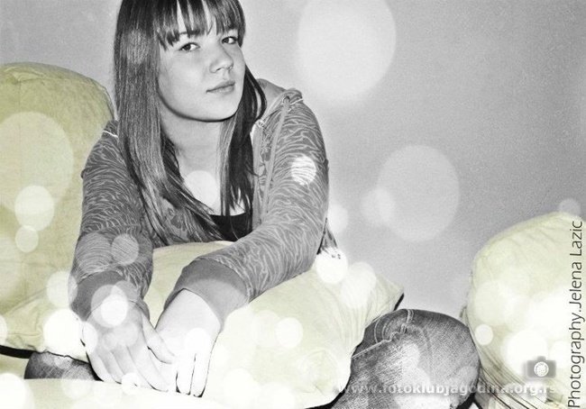 | Roðena 10. januara 1996. godine, negde daleko. Još od malih nogu pokazivala je sklonost ka umetnosti, u poèetku je to bila muzika a kasnije je njeno mesto zauzela fotografija. Sa fotografijom se upoznala iznenada jednog hladnog proleænog dana gledajuæi u svoj prozor ka svetu(kompjuteru) sa svojom najboljom drugaricom. Tada je videla prve umetnièke fotografije i urezala ih u svoje seæanje, a one se poigravaju sa njenom maštom svaki put kada želi da stvori nešto novo, inovativno. Za sebe ne misli da je posebna, veæ drugacija i trudi se da izgradi svoj stil. Fascinira je naèin na koji Sunce proviruje kroz grane i lepota (u svim oblicima). Cilj joj je da postane fotograf. Danas, ona živi u Jagodini, slobodno vreme provodi uz svoj fotoaparat, prijatelje uz velike doze smeha, malo problema i mnogo ljubavi koju širi oko sebe. Njene radove možete pronaæi na njenoj facebook stranici: "Jelena Lazic Photography". |
